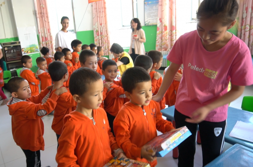 此外,小龙鱼教育爱心代表等一行人还前往了新疆喀什叶城县和泽普县的多所小学,向当地小学生捐赠了精美的小龙鱼助学大礼包。